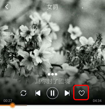 點按歌曲播放頁的右上角可以收藏歌曲哦。已收藏的歌曲可以在【我】-【收藏】中查看哦。如下圖所示: