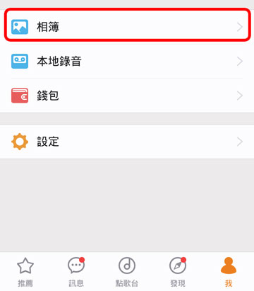 打開歡歌,在【我】的頁面中可以看到【相簿】,進入後點按【添加照片】可以直接添加圖片;點按【編輯】,選定圖片後可以直接刪除。如下圖所示: